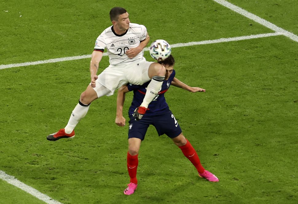 Pavard was stamped on by germany's antonio rudiger during the opening stages as he made a sliding tackle on the wing.rudiger's boots scraped along the neck of pavard and left him with a nasty injury.